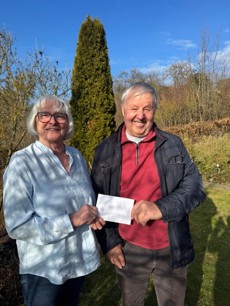 Die Vorsitzende Rita Fennel, die den großzügigen Betrag von 1700 € entgegen nahm, bedankte sich ganz herzlich bei dem Jubilar im Namen des Vorstandes und der Familien, denen diese Spende bei der nächsten Ausschüttung zugutekommen wird.